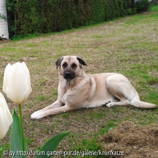 Bildname: Kangaldame Aika mit weißen Tulpen
