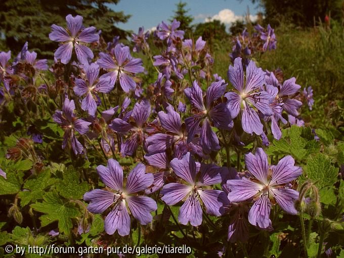 [i]G.[/i] 'Tricoli' blüht sehr früh, kurz nach [i]G. renardii[/i] aber vor [i]G.[/i] 'Terre Franche' und [i]G.[/i] 'Philippe Vapelle'. Die sehr zahlreichen Blüten stehen deutlich über dem Laub. Sie sind heller als bei 'Terre Franche', etwas mehr violett als bei 'Tcschelda' und haben eine gute Fernwirkung.