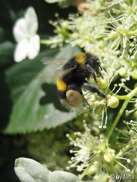 Bildname: Hummel an Kletterhortensie
