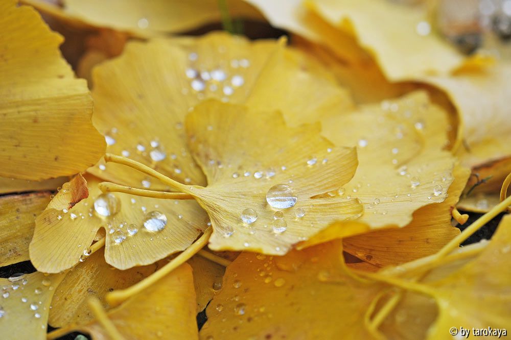 Bildname: ginkgo herbstblätter wasserperlen
