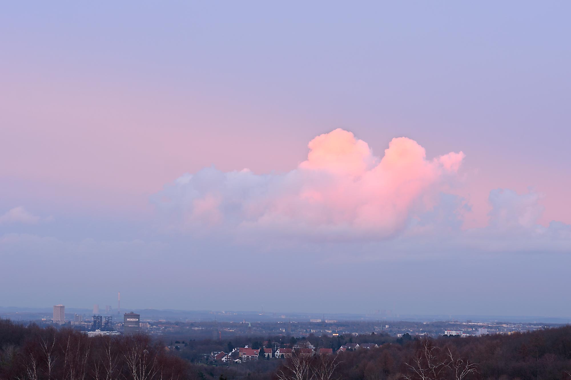 Bildname: rosa Weihnachtswolke über dem Ruhrpott