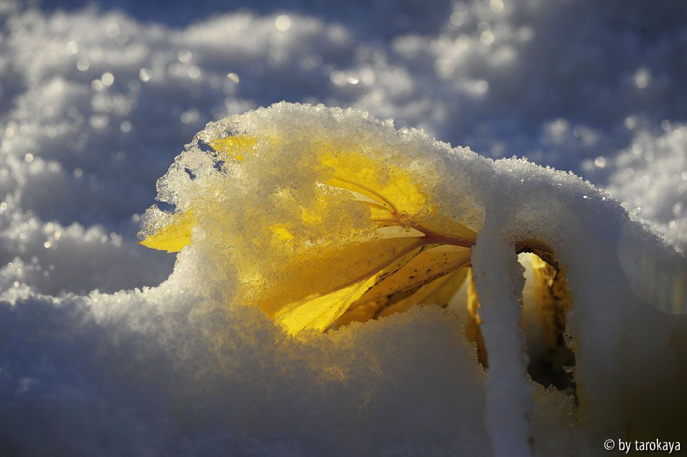 Bildname: blätter neon im schnee
