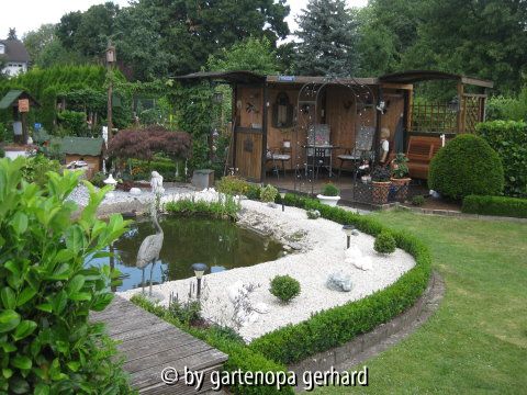 Bildname: Weinlaube und Gartenteich