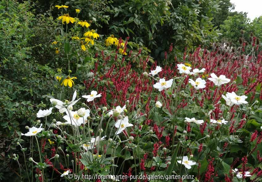 Bildname: Anemone Honorine Jobert mit Persicaria und Rudbeckia Herbstsonne August 2014