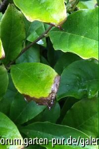 Braune Blätterspitzen am Magnolienbusch