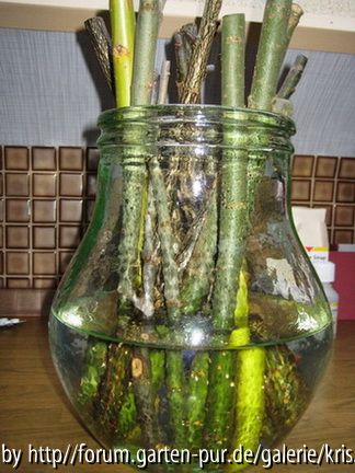 Bildname: Weidenstecklinge 4 tage nach dem Wässern (Aus den hellen Knubbeln werden Wurzeln)