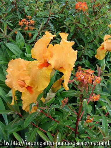 Bildname: Euphorbia griffithii mit Iris-Barbata-Hyb