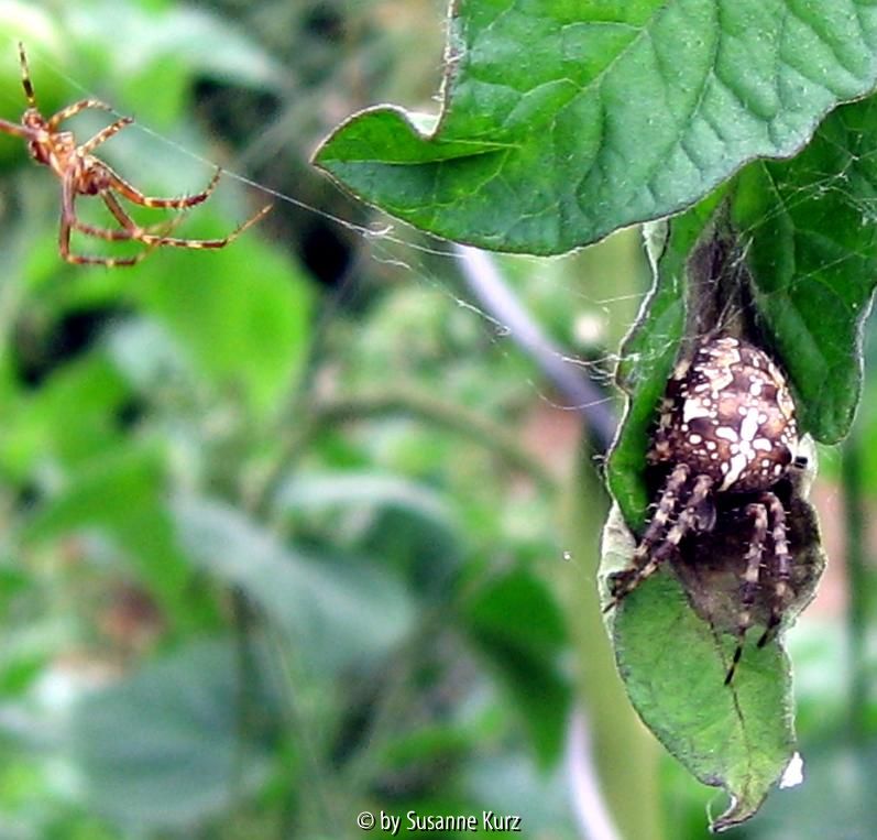 Bildname: Kreuzspinnendame wird von Jüngling angemacht - die Annäherung!