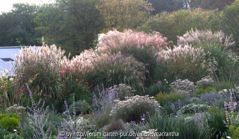 Bildname: verschiedene rosa-blühende Miscanthus-Sorten