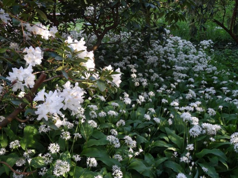 Bildname: Bärlauch unter Rhododendron