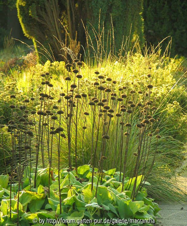Bildname: Festuca mairei im Hintergrund der Phlomis