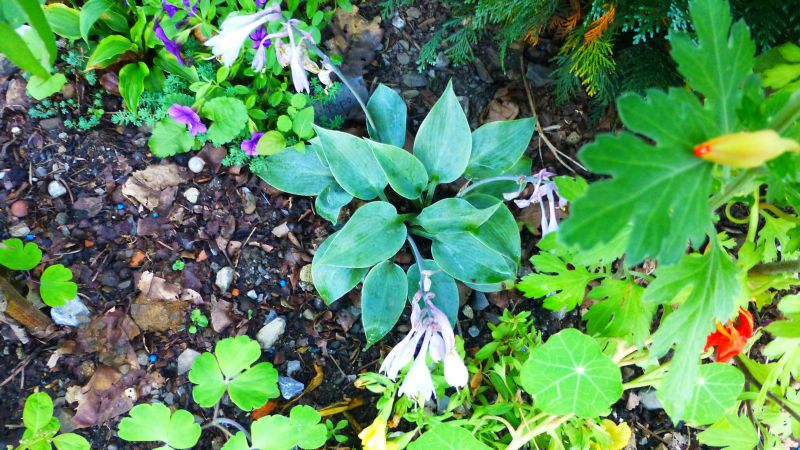 Bildname: Hosta ´Popo´ ein bisschen versteckt
