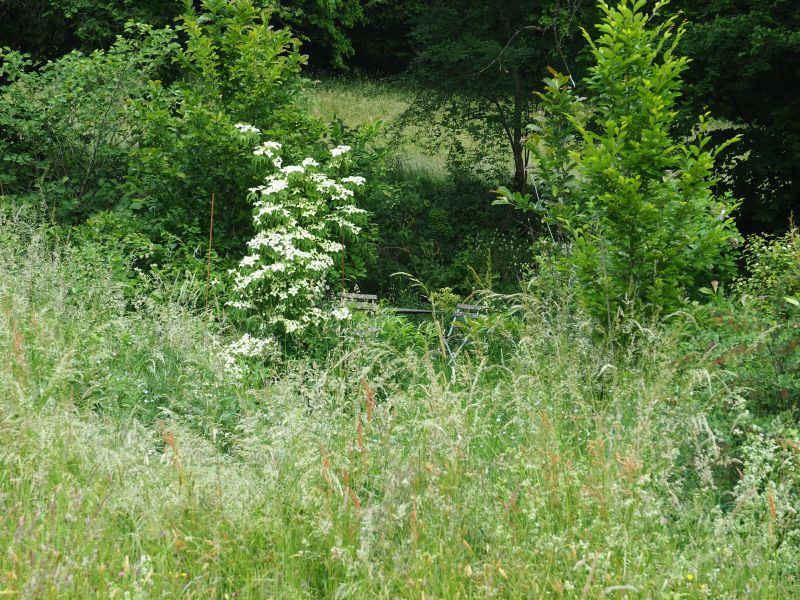 Bildname: Wiese mit Blick auf Cornus kousa var. chinensis 'China Girl'
