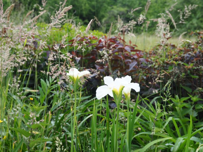 Bildname: weiße Iris sibirica in der Wiese