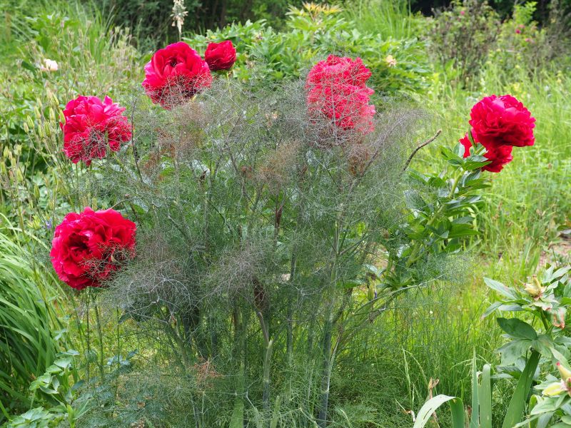 Bildname: Paeonia 'Henry Bockstoce' + Foeniculum vulgare 'Smokey'