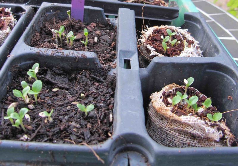 Bildname: 4 Tage alte Salat-Merlot-Sämlinge draußen