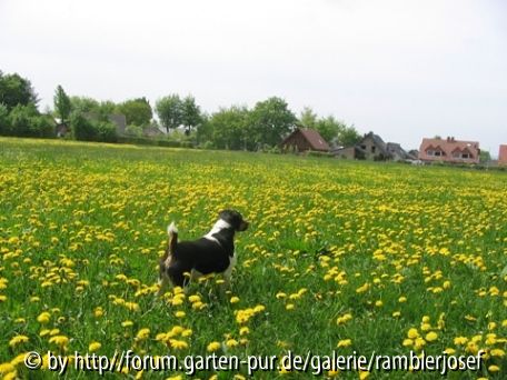 Bildname: Tomy auf der Nachbarwiese mit Löwenzahn ( Eifelgold)
