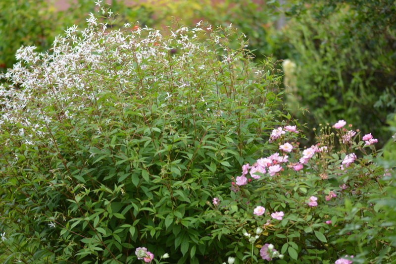 Gillenia trifoliata mit Rose "Petite de Terre franche"