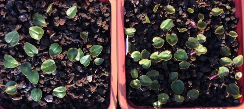 Bildname: Cyclamen cyprium links und C.libanoticum rechts