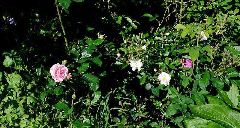 Bildname: Rose 'Fil d'Ariane' und Nachbarn