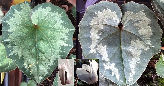 Bildname: Cyclamen balearicum (links), peloponnesiacum f.album (rechts)