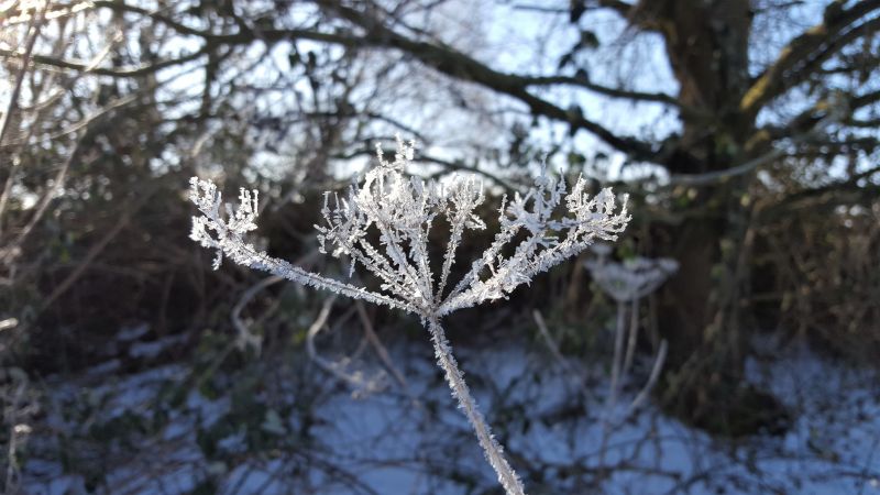 Bildname: Bärenklau, bei minus 7 Grad, am Lesumufer