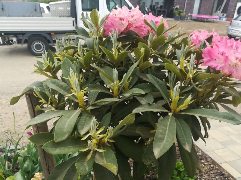 Bildname: Rhododendron mit Blüten auf einer Seite