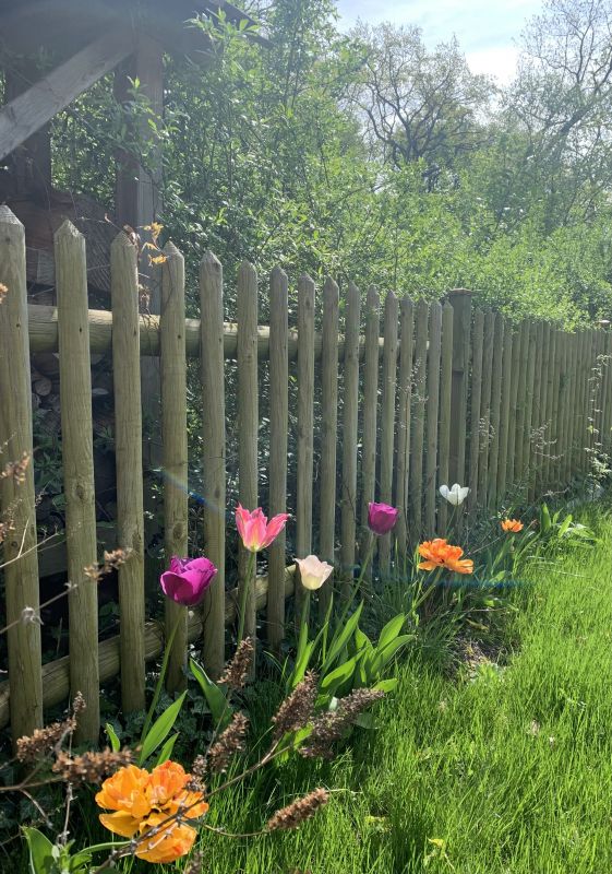 Bildname: Tulpen am Zaun mit Überraschungstulpen