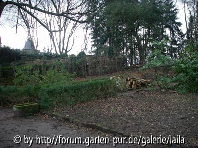 Bildname: Noch ein Blick auf das Türmchen (mit Weg von Anbau zum Zugang des unteren Gartens)