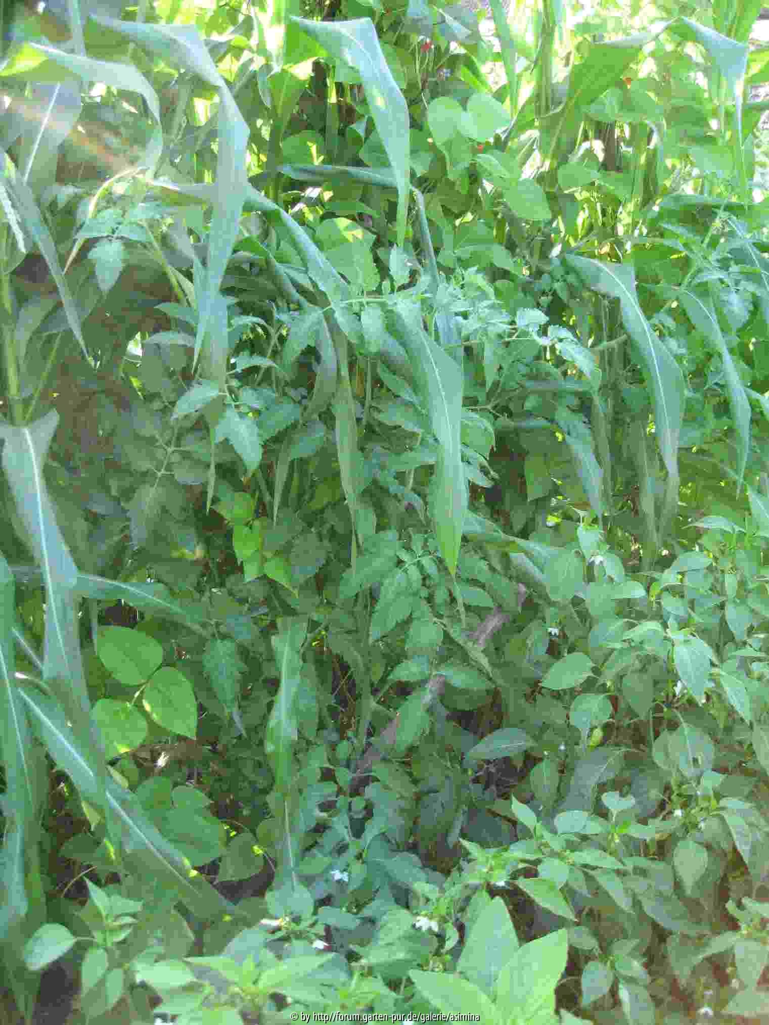 Bildname: Tomate Freiland unter Mais und Bohnen