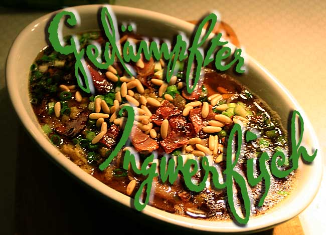 Bildname: gedämpfter ingwerfisch mit pinienkernen