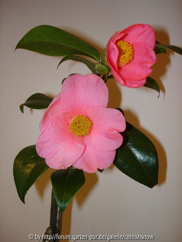 Zählt zu den ersten Williamsii-Hybriden. Im Jahre 1923 von J. C. Williams gezüchtet, wurden sie erst nach seinen Tod 1939, durch seinen Sohn Charles im Laufe von 20 Jahren auf den Markt gebracht. Als ältere hat diese schöne Sorte eine sehr lange Blütezeit von November bis April.