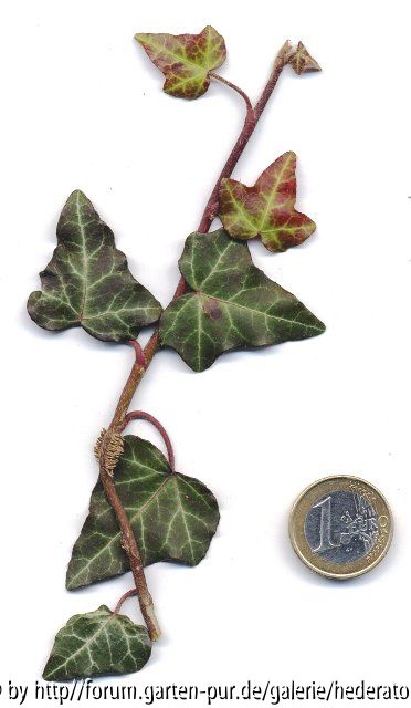 Hedera helix Typ. 1907 bei Riga in Lettland von Alfred Rehder entdeckt. Unterscheidet sich kaum vom typischen H. helix , es ist eine »geographische« Sorte jedoch mit einer größeren Winterhärte. Es handelt sich um das nördlichste Verbreitungsgebiet von Hedera helix. Zu verwenden wie normaler Efeu. Winterhärte XXX. Erhalten 2002 aus der Boomkwekerij Hardijzer ,NL.