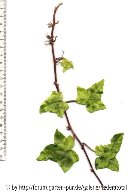 Pittsburgh-Rasse. 1989 ,USA aus einer Gärtnerei im Südosten von Pennsylvania. Entstanden aus H.helix 'Gold Dust'. Gut zu verwenden als Topf und Hängepflanze. Winterhärte O-X.