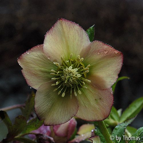 Bildname: Helleborus orientalis Blüte mit Tropfen - Schmiemann
