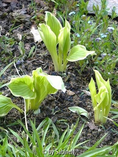 Bildname: für Karin : mittelhohe Hosta geteilt nach der Pflanzung im Vorgarten