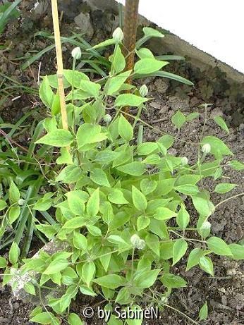 Bildname: Clematis Chrystal Fountain im ersten Jahr : habitus am 1. Mai