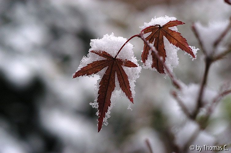 Bildname: Acer Wilsons pink dwarf mit Schnee-Häubchen