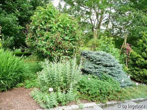 im Hintergrund auch was interessantes: Leycesteria formosa, Buntdachblume aus dem Himalaja