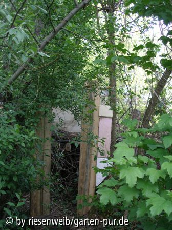 Bildname: kinderspiel: huette in dickicht am gartenrand