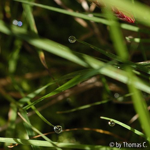 Bildname: Tropfen glitzern im Gras