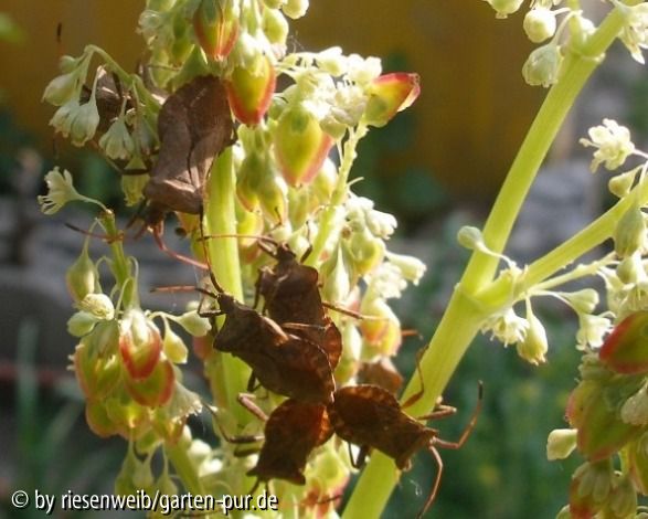 Bildname: wanzen auf rhabarberfruchtstaenden