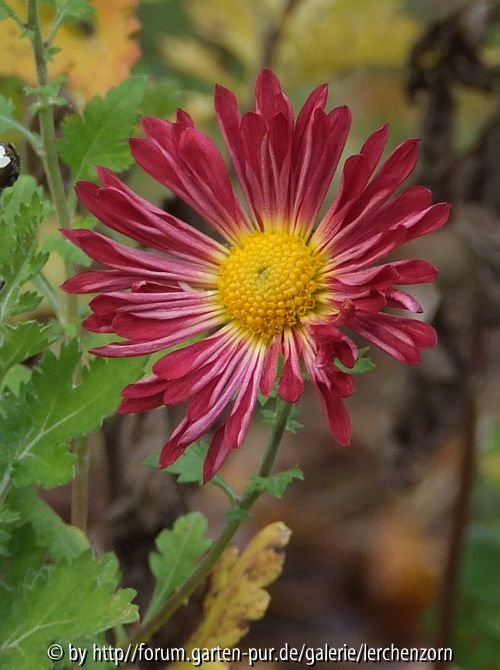 Bildname: Garten im November - Wappenschild (Dendranthema-Hybr.)