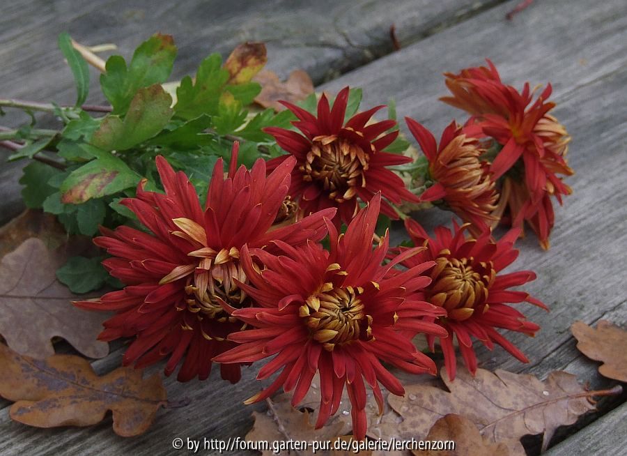 Bildname: Garten im November - abgelegt (Dendranthema-Hybr. "Fellbacher Wein"?)