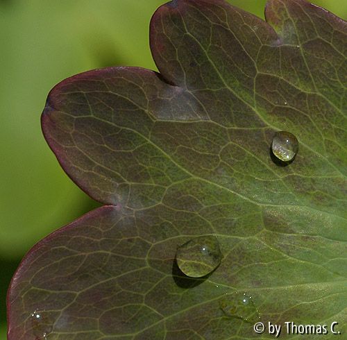 Bildname: Tropfen auf Akelei-Blatt