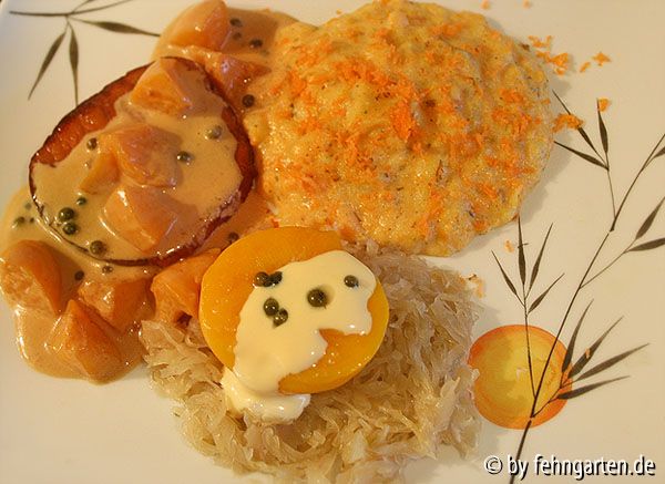 Bildname: kassler, pfirsich, pfeffer