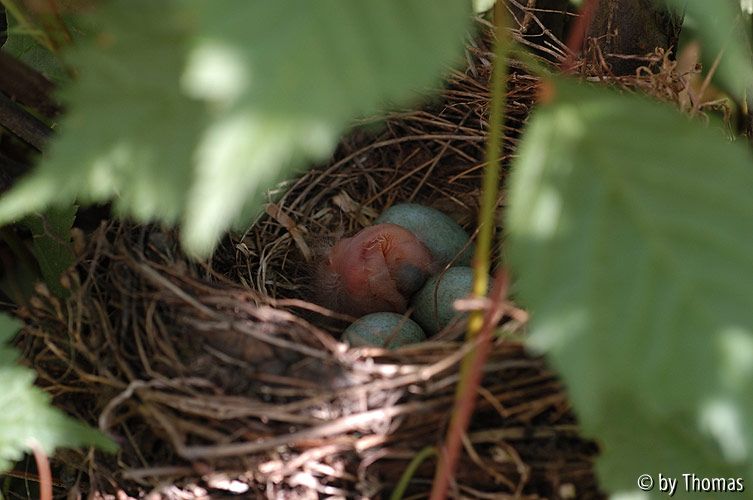 Bildname: Amselnest 05 - erstes Junges geschlüpft - sieht noch sehr unfertig aus