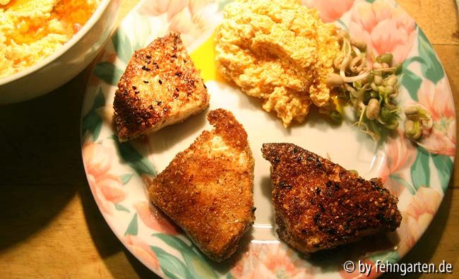 Bildname: panierte sellerieecken mit möhrencreme