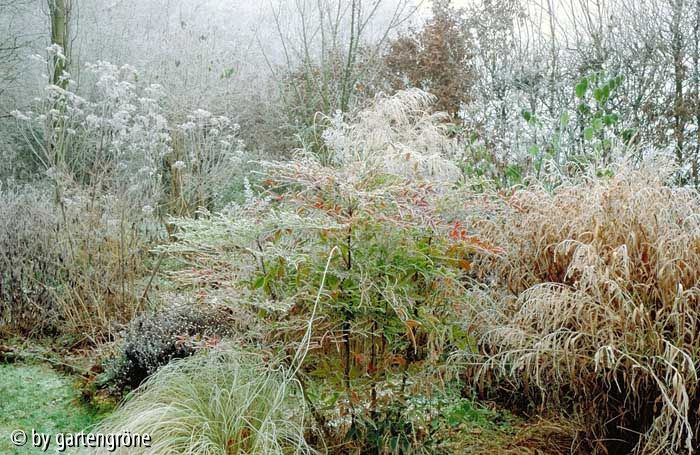 Bildname: Nandina, Astern und Plattährengras im Winter