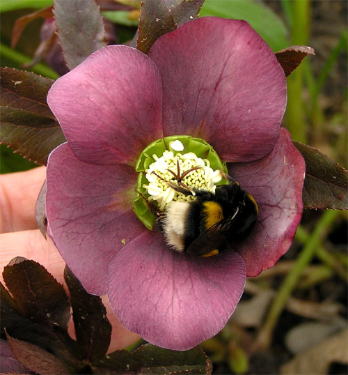 Bildname: Hummel an Helleborusblüte